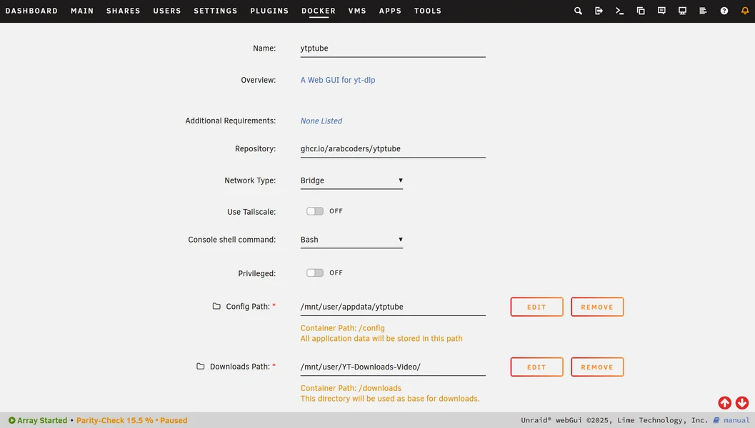 YTPTube is a web-based GUI for yt-dlp that makes downloading YouTube videos through your browser simple. This guide shows you how to Install YTPTube on Unraid using the Community Applications store, configure it and the set a preset to download using the best codecs, download subtitles if available and auto-create folders for the downloaded content. I chose YTPTube over other Unraid apps because it uses yt-dlp instead of the older youtube-dl. yt-dlp is actively maintained with frequent updates to keep up with YouTube’s changes, while youtube-dl often breaks and stays broken for weeks. More importantly, YTPTube’s preset system lets me create custom download configurations for exactly how I want my videos—whether it’s H.265 for Plex, specific resolutions, subtitle formats, or organised folder structures. This flexibility means I can have different presets for different content types (tech videos, tutorials, entertainment) with the exact codec, quality, and organisation that works for my setup. Other web GUIs are either too basic or use outdated youtube-dl, but YTPTube gives me the power of yt-dlp’s command-line flexibility through a simple browser interface.